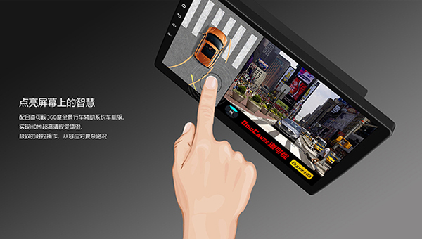 觸控——產(chǎn)品采用了10.1寸超大IPS屏幕以及G+G觸摸屏,可實現(xiàn)觸控操作;在觸控指令下,在行車過程中可根據(jù)車主自主需求,直接通過觸摸屏幕切換視角畫面, 無需再通過打轉(zhuǎn)向燈或是掛倒擋等來被動切換視角畫面,除此之外,還可實現(xiàn)設(shè)置、記錄回放等眾多便捷操控,更智能、更便捷!