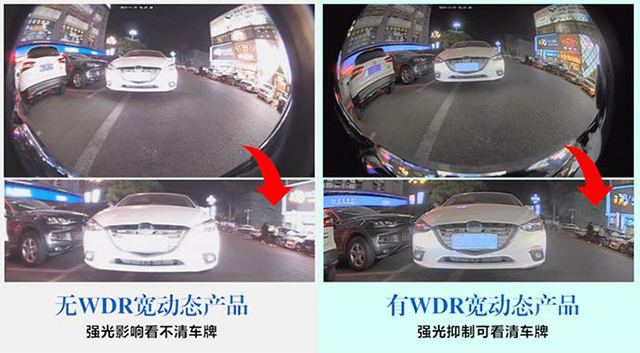 在實(shí)測(cè)中,我們將有WDR和無WDR的視頻做了對(duì)比,對(duì)比發(fā)現(xiàn),有WDR的視頻里,車牌更清晰,盲區(qū)更清晰,夜晚更明亮,畫質(zhì)更細(xì)膩,有效地解決了生活中攝像頭遇到汽車大燈等強(qiáng)光時(shí),畫面曝光、眩光等問題。