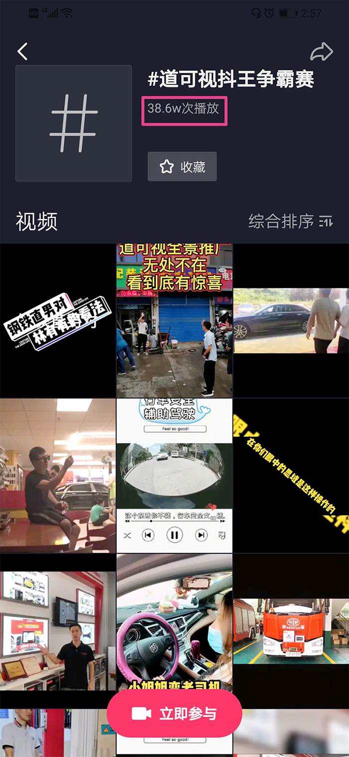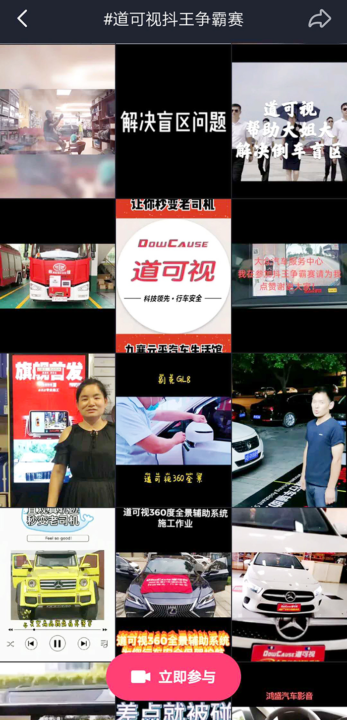 再來(lái)回顧一下本次活動(dòng)的參與規(guī)則,2020道可視“抖王”爭(zhēng)霸賽第一季賽程周期為2020年7月20日-9月30日,只要你有抖音賬號(hào),只要你是道可視代理商、4S店集團(tuán)、經(jīng)銷商、員工、用戶等均可以參與到“抖王”爭(zhēng)霸賽中來(lái)。