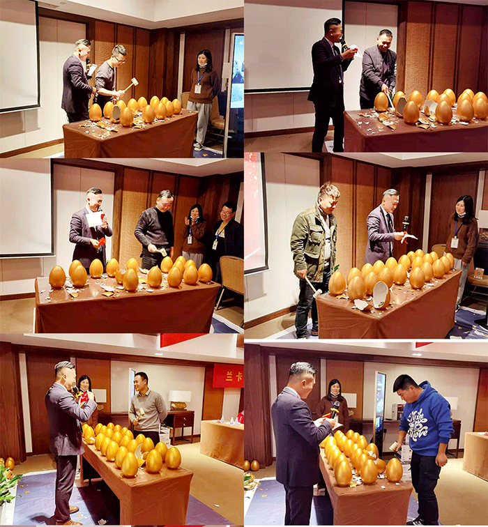 在活躍的現(xiàn)場中,道可視為簽定合約的首批運營商們舉辦正式簽約儀式及砸金蛋的活動。
